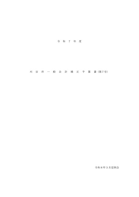 令和7年度刈谷市一般会計補正予算書(12月定例会追加上程分)